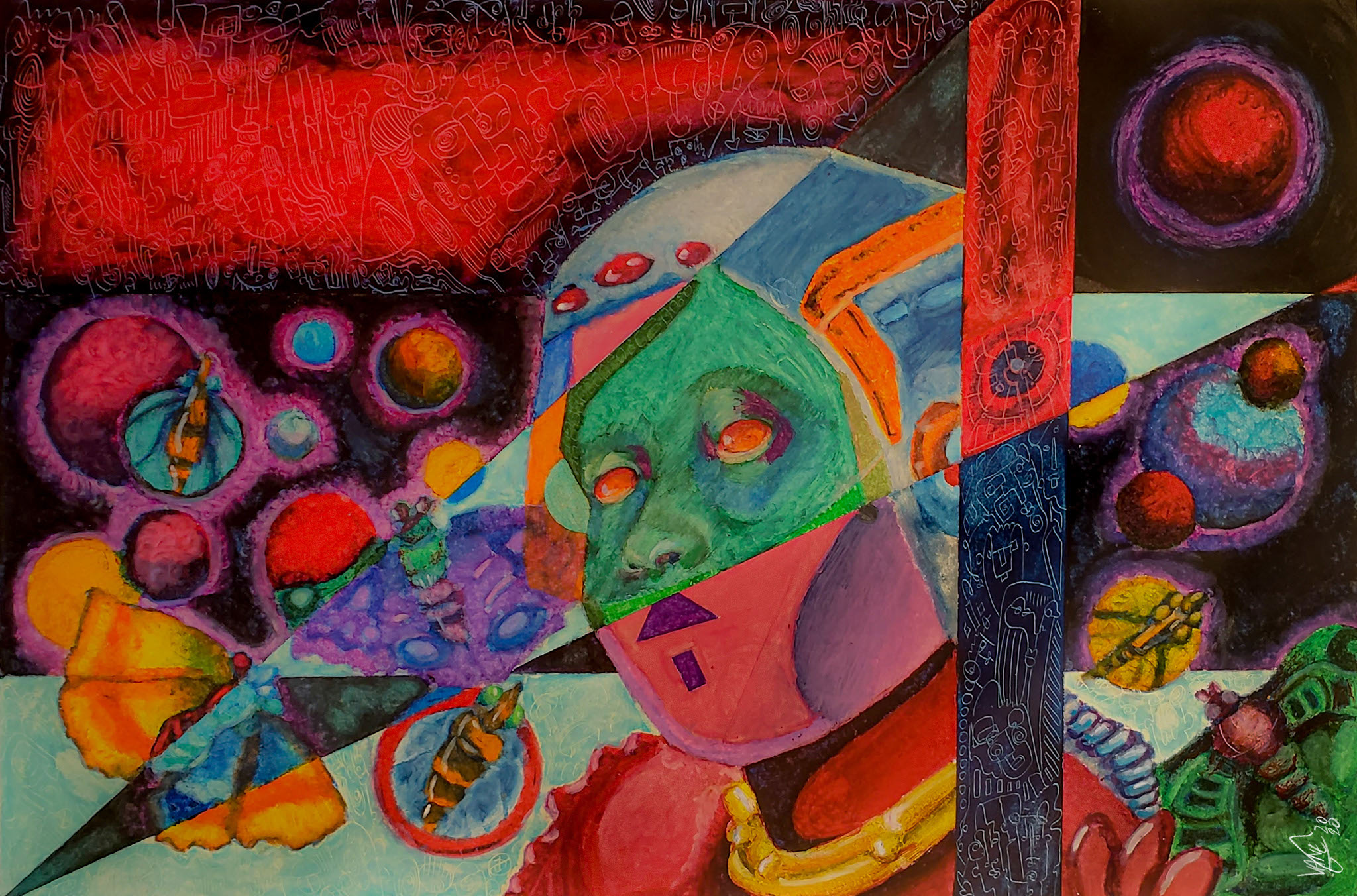 bristol paper, watercolor pencils, micron pens, soft pastels